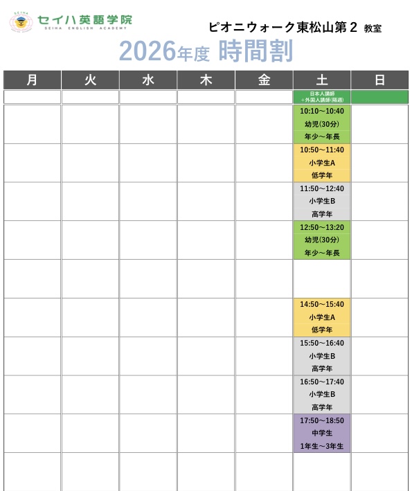 新入生の方、既存生の方も新しい時間割の確認お忘れなく!