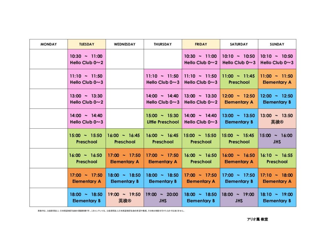 4月からの時間割のご案内です!