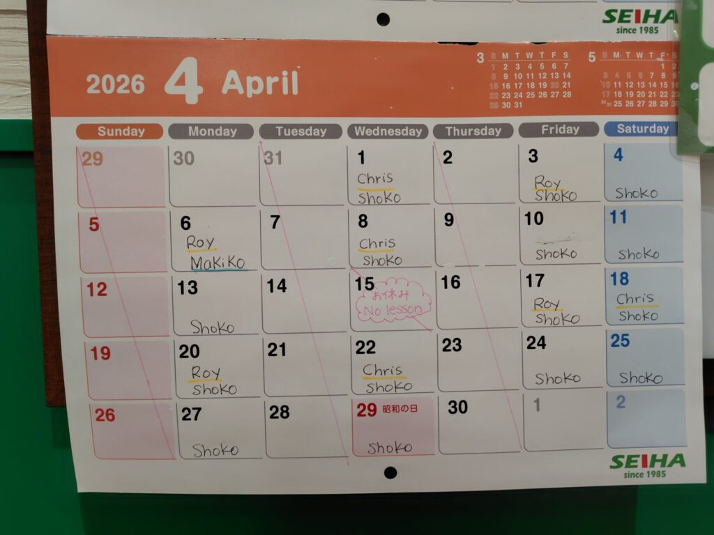 4月のレッスンカレンダーです!