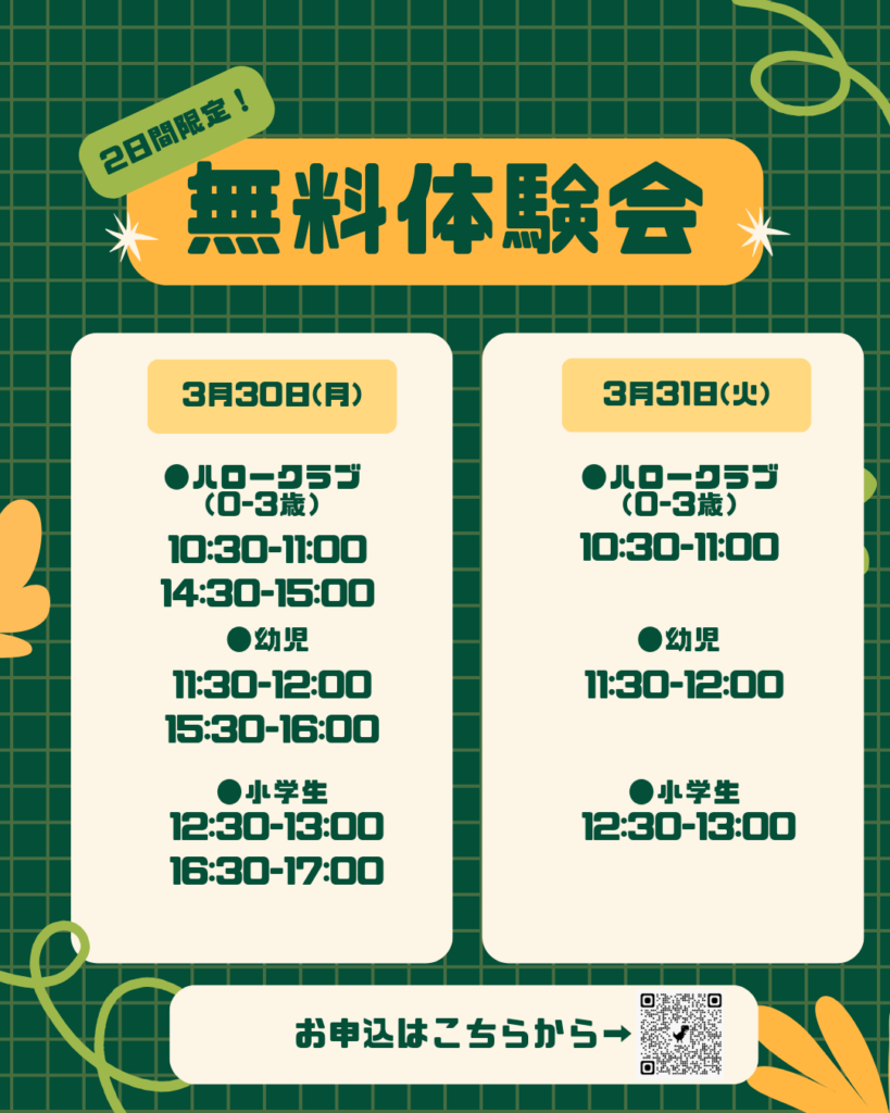 ※3/29(日)は教室がお休みとなります。 ご予約フォームから送信の上、 当日5分前に直接教室までお越しくださいませ🧸💛