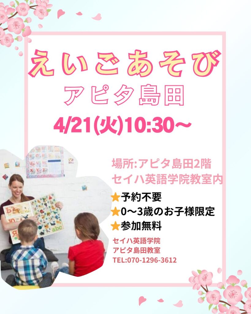 4月の英語遊びは、4/21(火)10:30~です!