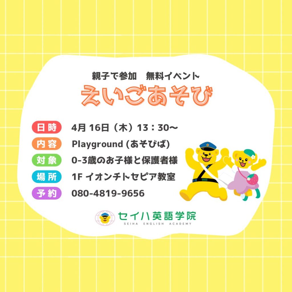 セイハ英語学院では0-3歳のお子さま向けに毎月無料のえいごあそびを開催しております。