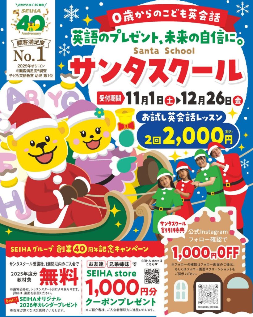 セイハ英語学院では、\サンタスクール/を実施しております♪