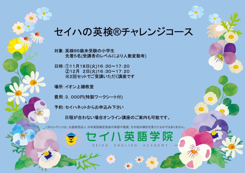 セイハ英語学院では、英検®5級を受験したことがない小学生を対象に