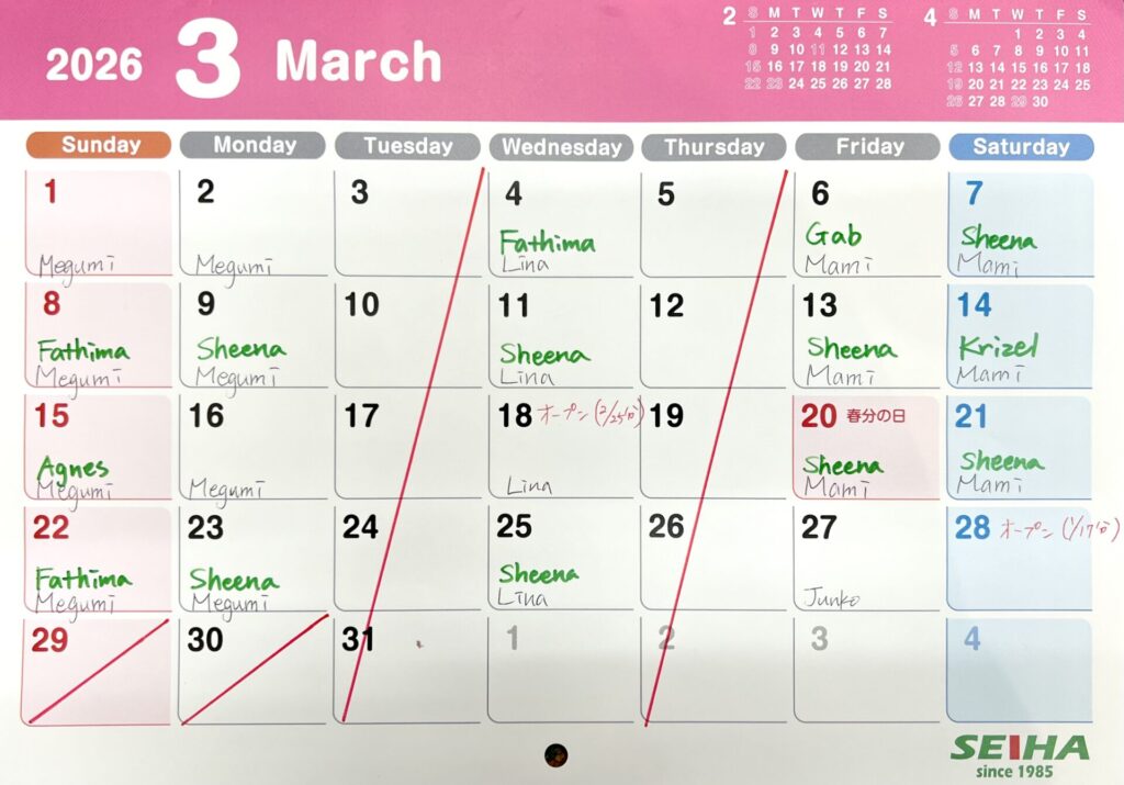 3月のスケジュールは上記を予定しております。