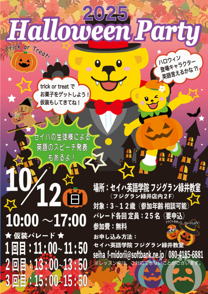 フジグラン緑井の館内を” trick or treat〜! Happy Halloween!!! “と言いながら、お菓子をもらおう!