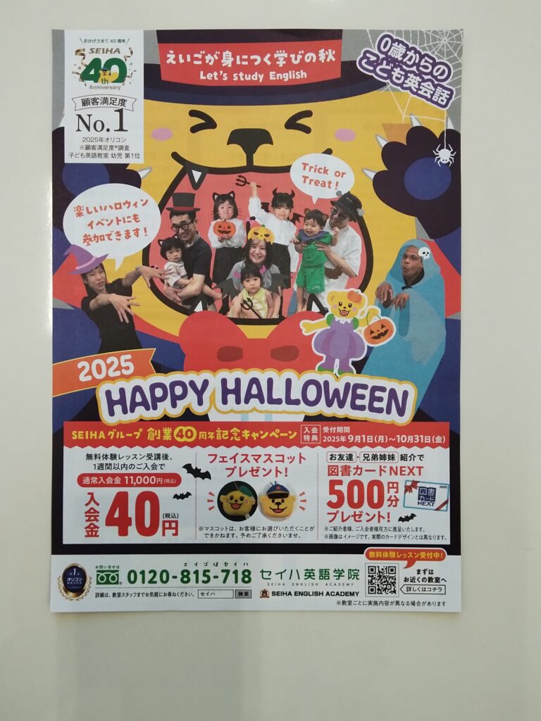 ハロー🤗セイハ英語学院イオンモール堺北花田第1教室です😊
