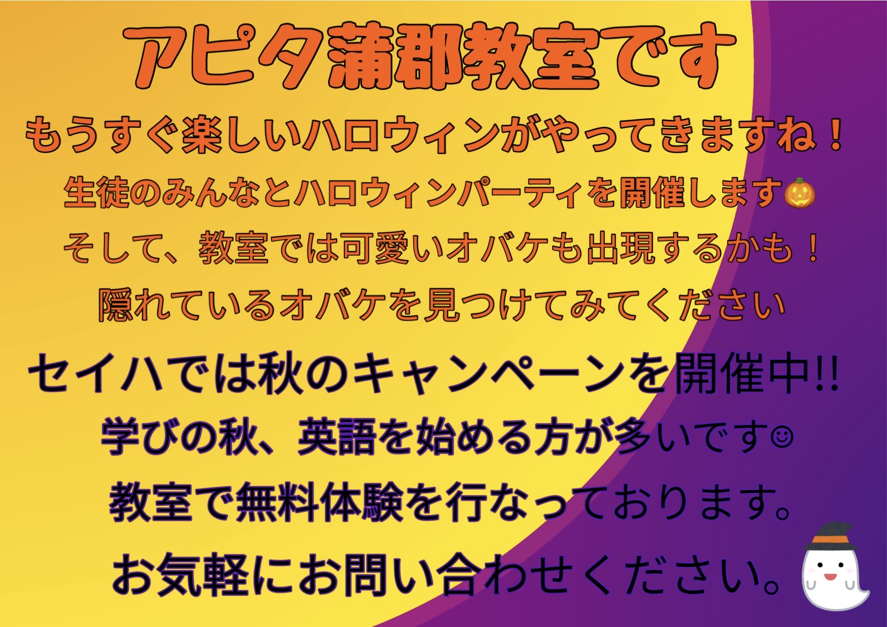 さて、秋の無料体験受付中です!。様々な特典もございます。ぜひお気軽にお問合せください☺︎