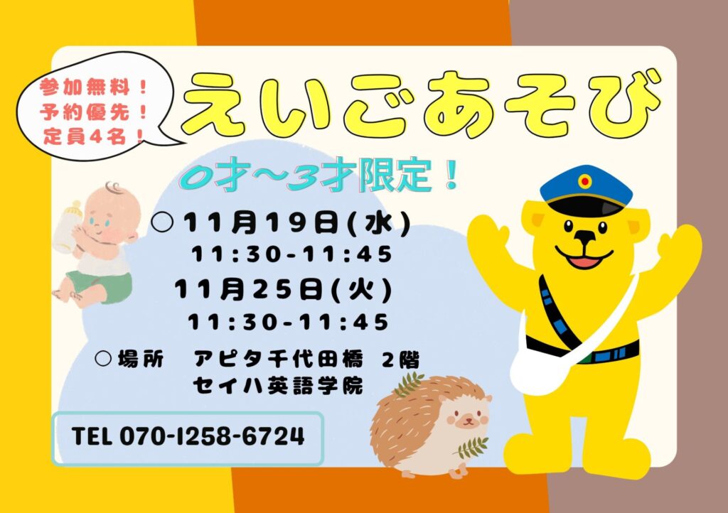 11月の英語あそびは以下の日程です!