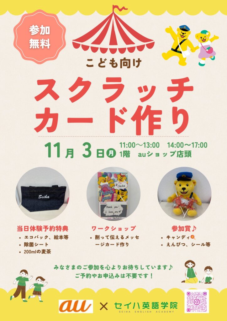 11/3(月・祝)キッズ向け『スクラッチカード作りワークショップ』を開催いたします✨