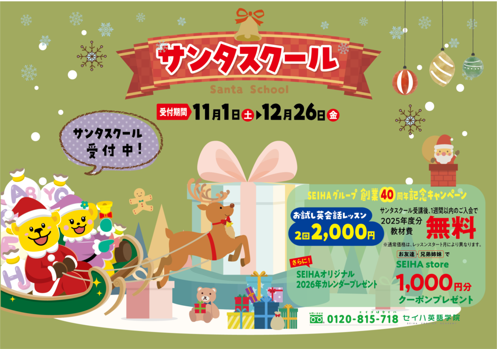 セイハ英語学院では11月よりお得なウィンターキャンペーンを実施中です!