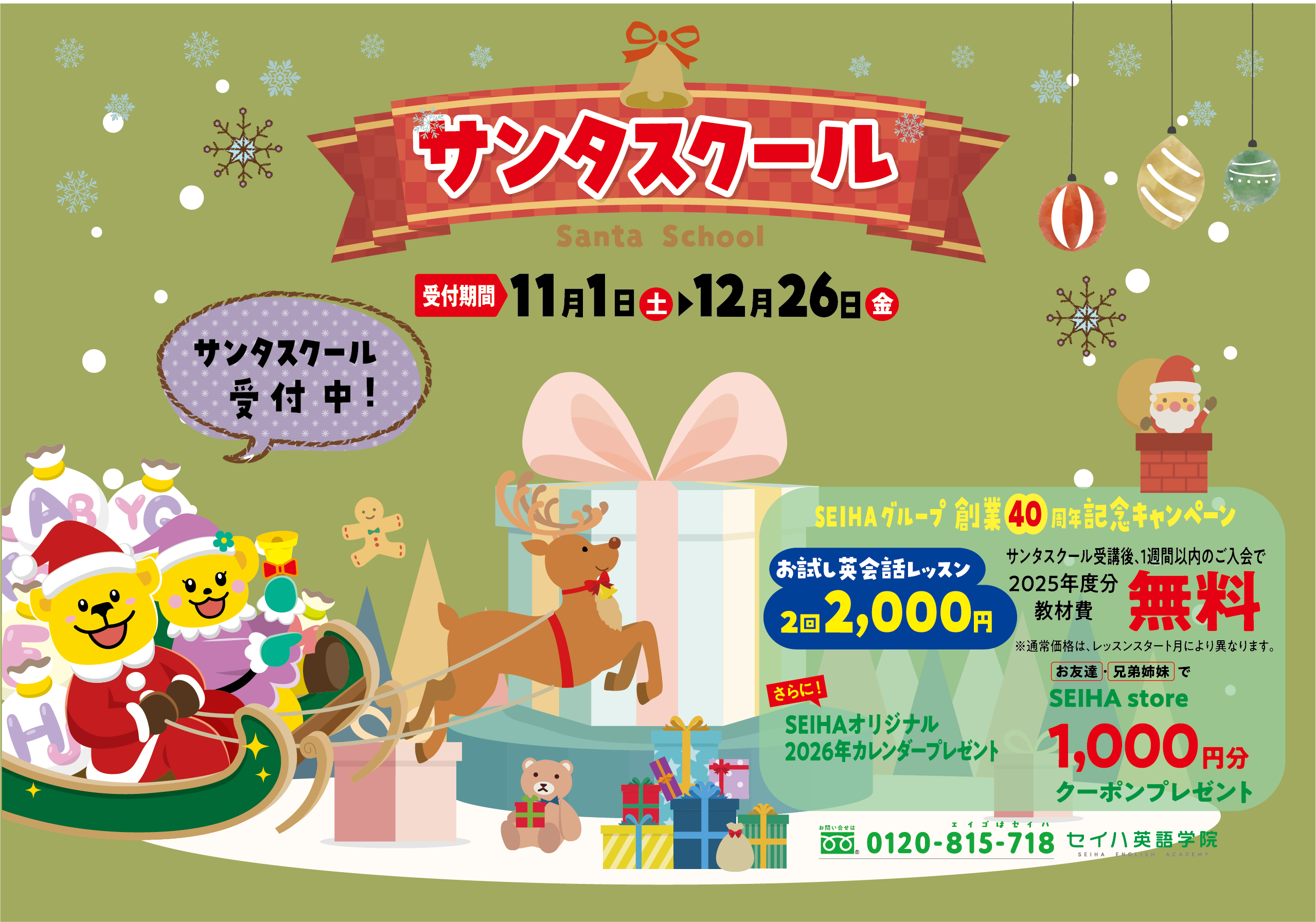セイハ英語学院では、歌やゲーム、工作を通して楽しく英語を学べる冬の特別キャンペーンを実施中です!