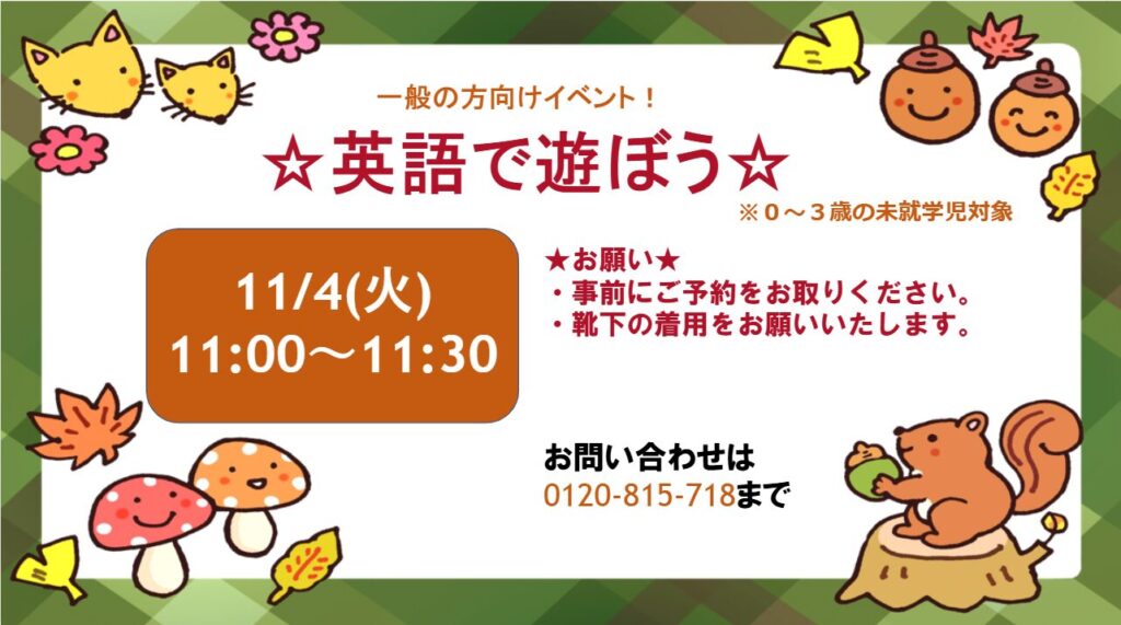 11月のえいごあそびは、何をやるのかな? お楽しみに!